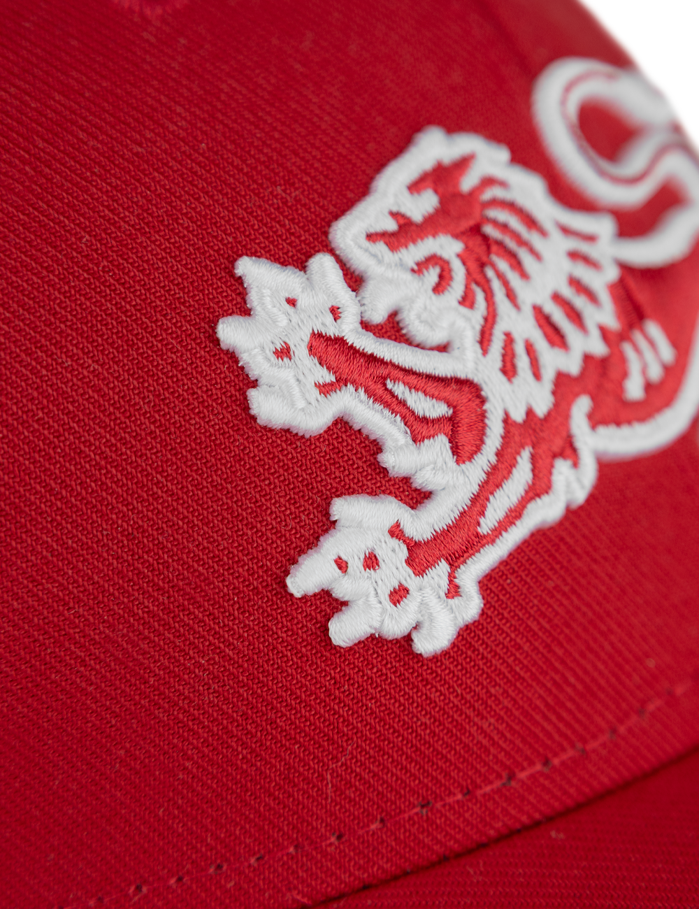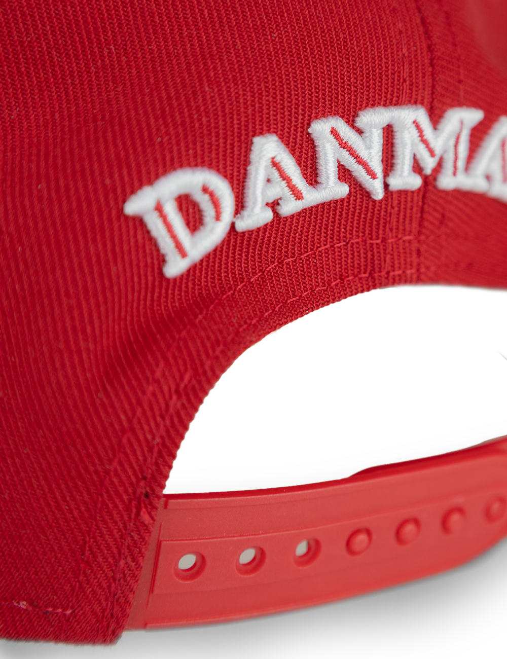 En klassisk kasket i rød med den officelle danske løve på fronten, som symboliserer det danske ishockey landshold. På bagsiden er der et spænde, som kan justeres efter behov, samt "DANMARK" skrevet i hvid.
