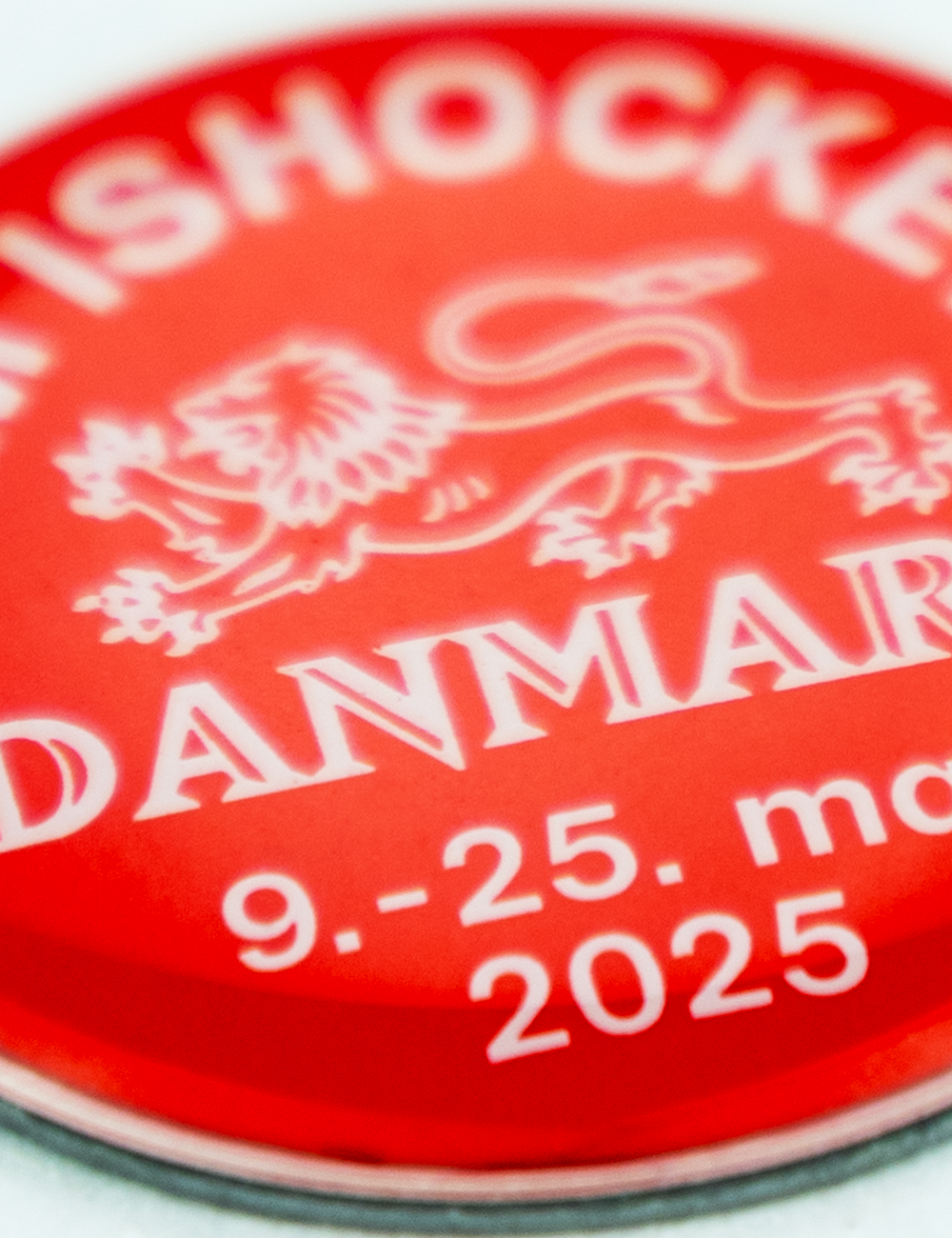 Bliv klar til kamp med denne officielle danske VM 2025 pin.
