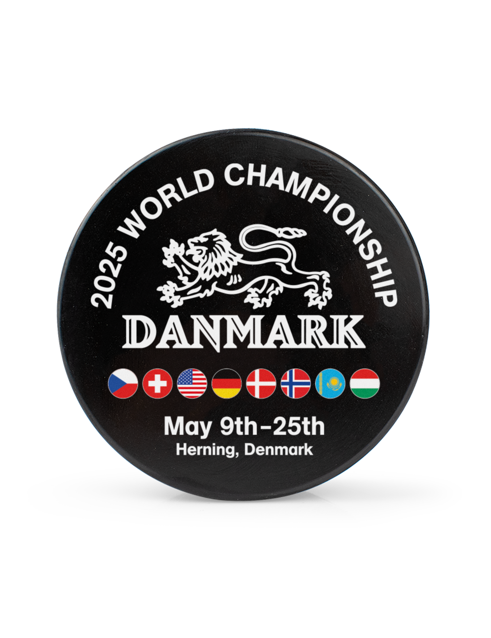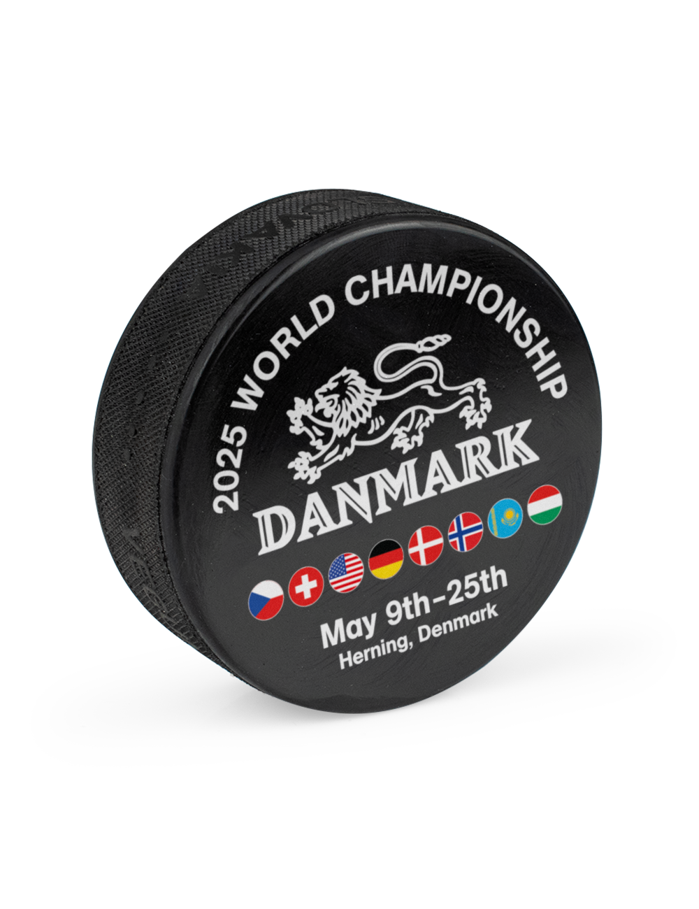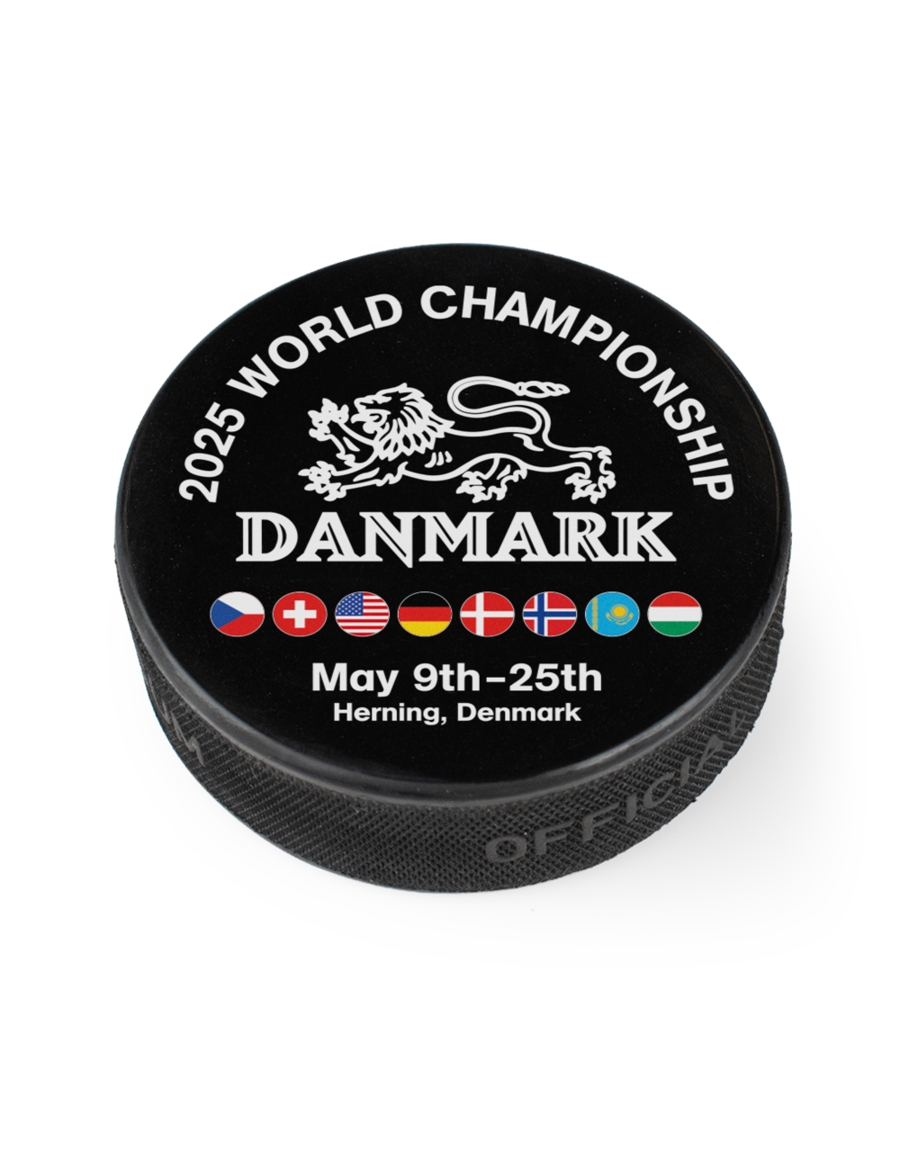Puck med nationerne i danmarks pulje. Brug den til træning, eller pynt hjemme i stuen eller på værelset.